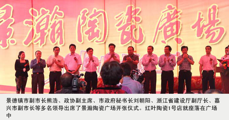 2012年9月22日,景瀚陶瓷廣場(chǎng)開(kāi)業(yè)典禮盛大召開(kāi)。當(dāng)天,景德鎮(zhèn)市副市長(zhǎng)熊皓、景德鎮(zhèn)市政協(xié)副主席、市政府秘書長(zhǎng)劉朝陽(yáng),浙江省建設(shè)廳副廳長(zhǎng)樊劍平、浙江省嘉興市副市長(zhǎng)張仁貴出席了本次開(kāi)業(yè)典禮?! ?nbsp;