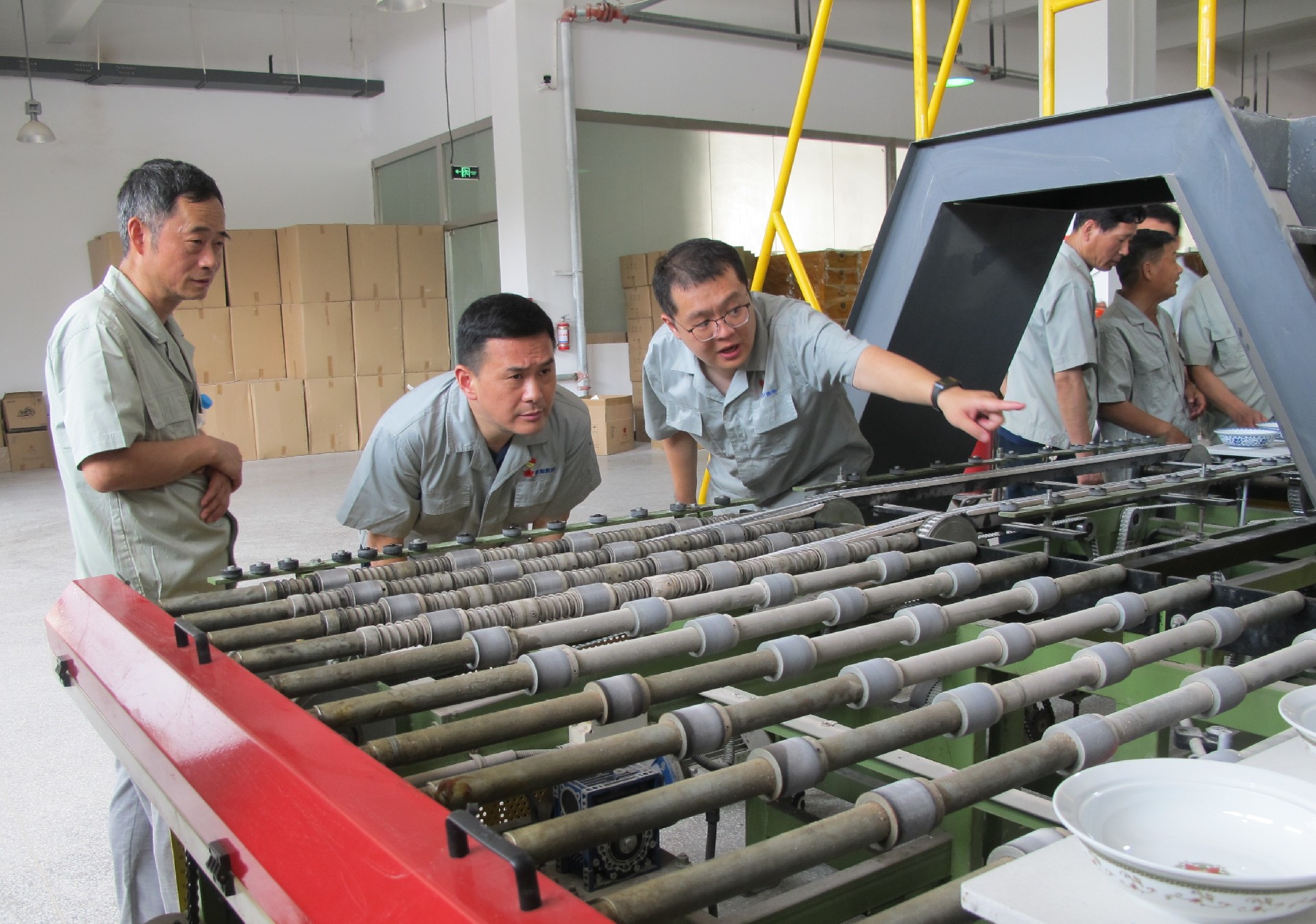 在生產(chǎn)車間調(diào)研中,鄧景揚(yáng)先后下到各個(gè)生產(chǎn)工序現(xiàn)場,從原料、模型、成型、燒煉到彩繪車間,對每個(gè)工序都進(jìn)行了詳細(xì)了解,重點(diǎn)了解了紅葉一廠的整體生產(chǎn)能力及現(xiàn)狀。