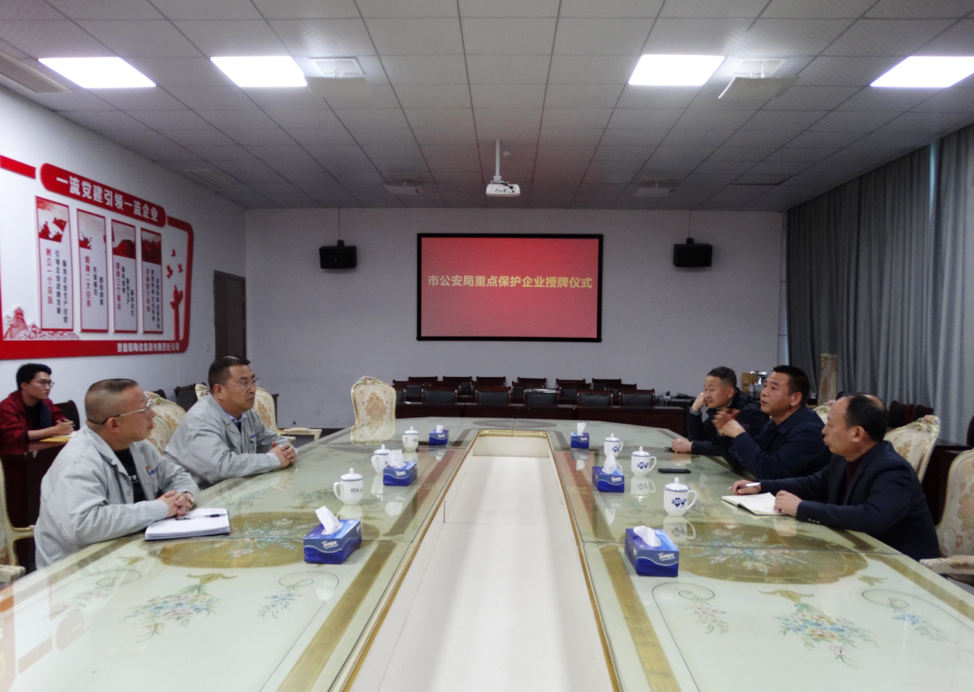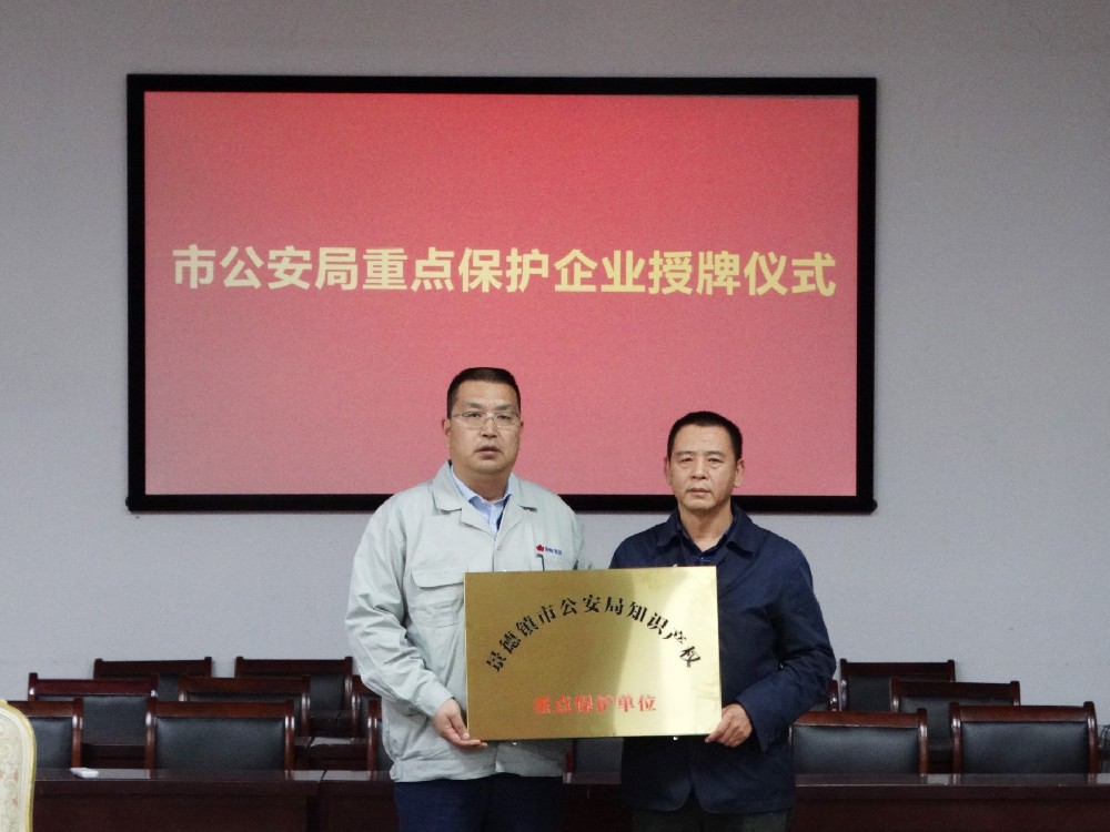 12月1日下午,市公安局在景陶集團(tuán)一樓會(huì)議室舉行重點(diǎn)保護(hù)企業(yè)授牌儀式。景德鎮(zhèn)市公安局食藥環(huán)偵查分局局長(zhǎng)周興妙,副局長(zhǎng)趙敬展,知識(shí)產(chǎn)權(quán)大隊(duì)長(zhǎng)徐廣志出席授牌儀式。景陶集團(tuán)黨委副書(shū)記、總經(jīng)理邢浩,副總經(jīng)理袁建國(guó)參加授牌儀式。